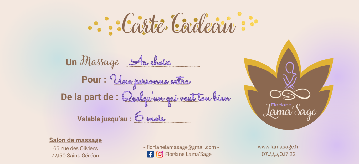 La carte cadeau est valable 6 mois, date à partir de l'achat. Non remboursable. Non cessible. Non divisible.