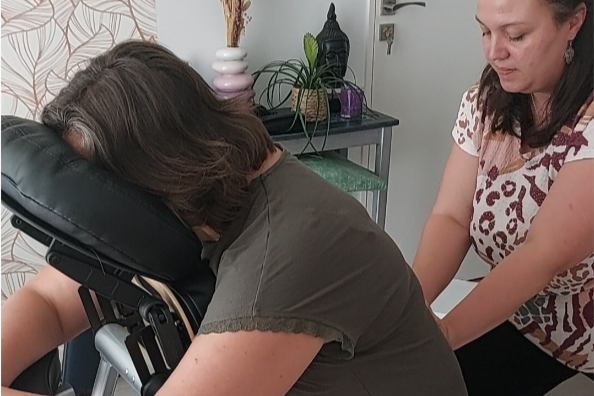 Direction le Japon bien installé dans sa chaise ergonomique. Massage habillé apportant relaxation et un boost en énergie.